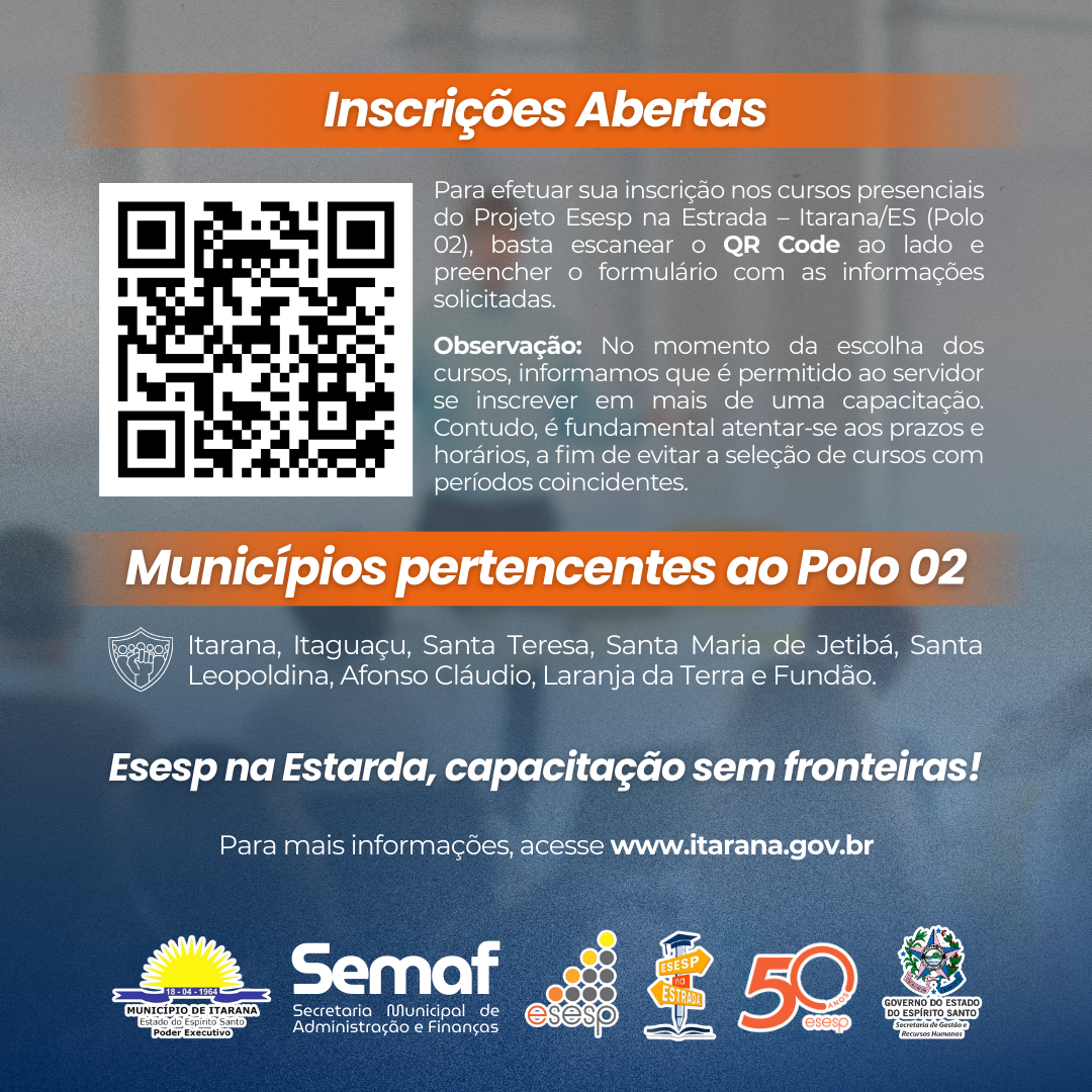 As inscrições continuam abertas e podem ser realizadas pelo link disponível nas redes sociais da Prefeitura de Itarana. Participe e aproveite essa oportunidade de crescimento profissional!