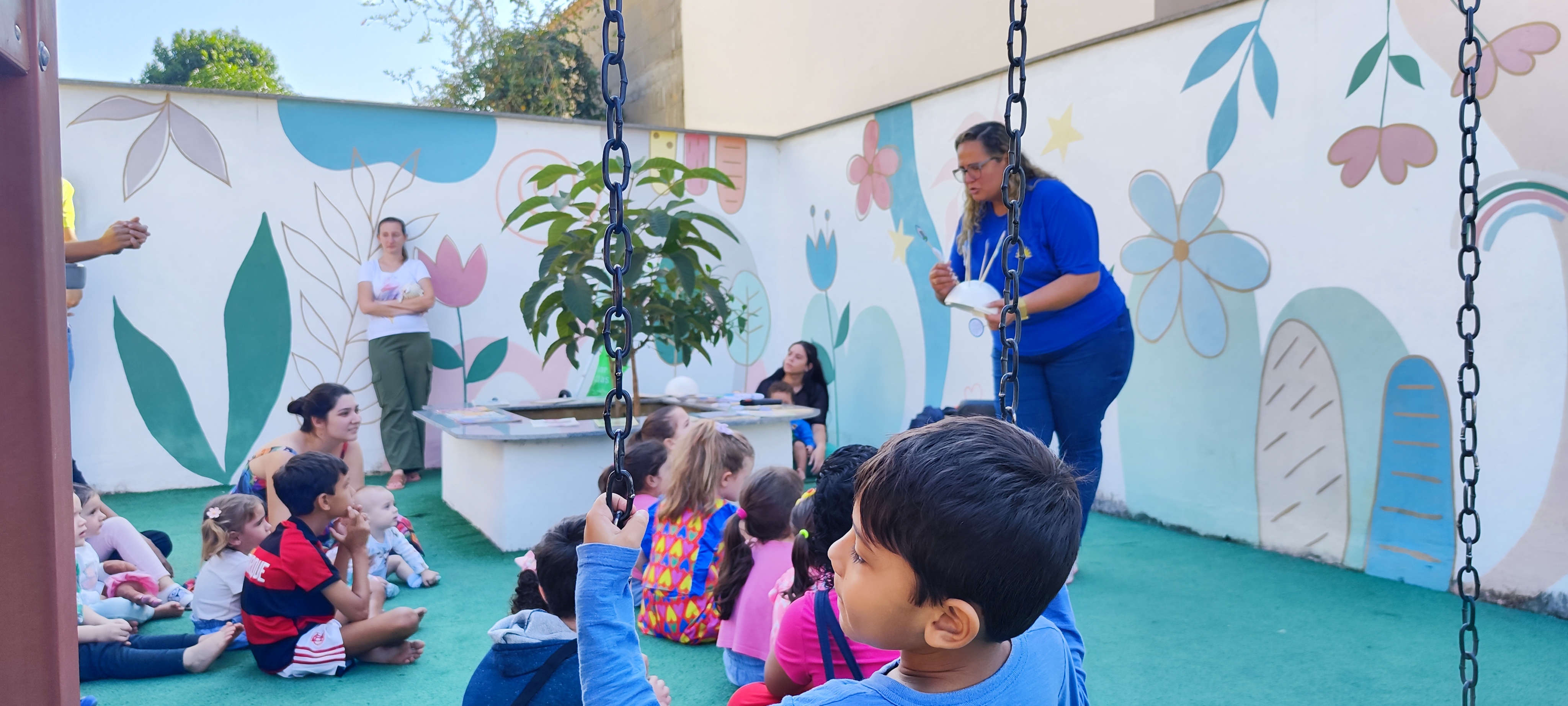 Nesta quinta-feira (24), o evento precisou ser cancelado. Mas amanhã, sexta-feira (25) estaremos de volta e será a vez da tia Gessika conduzir o momento, trazendo mais encantamento e diversão para os pequenos.