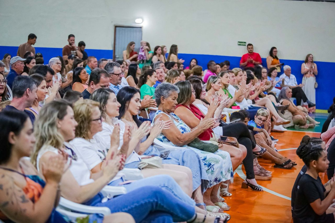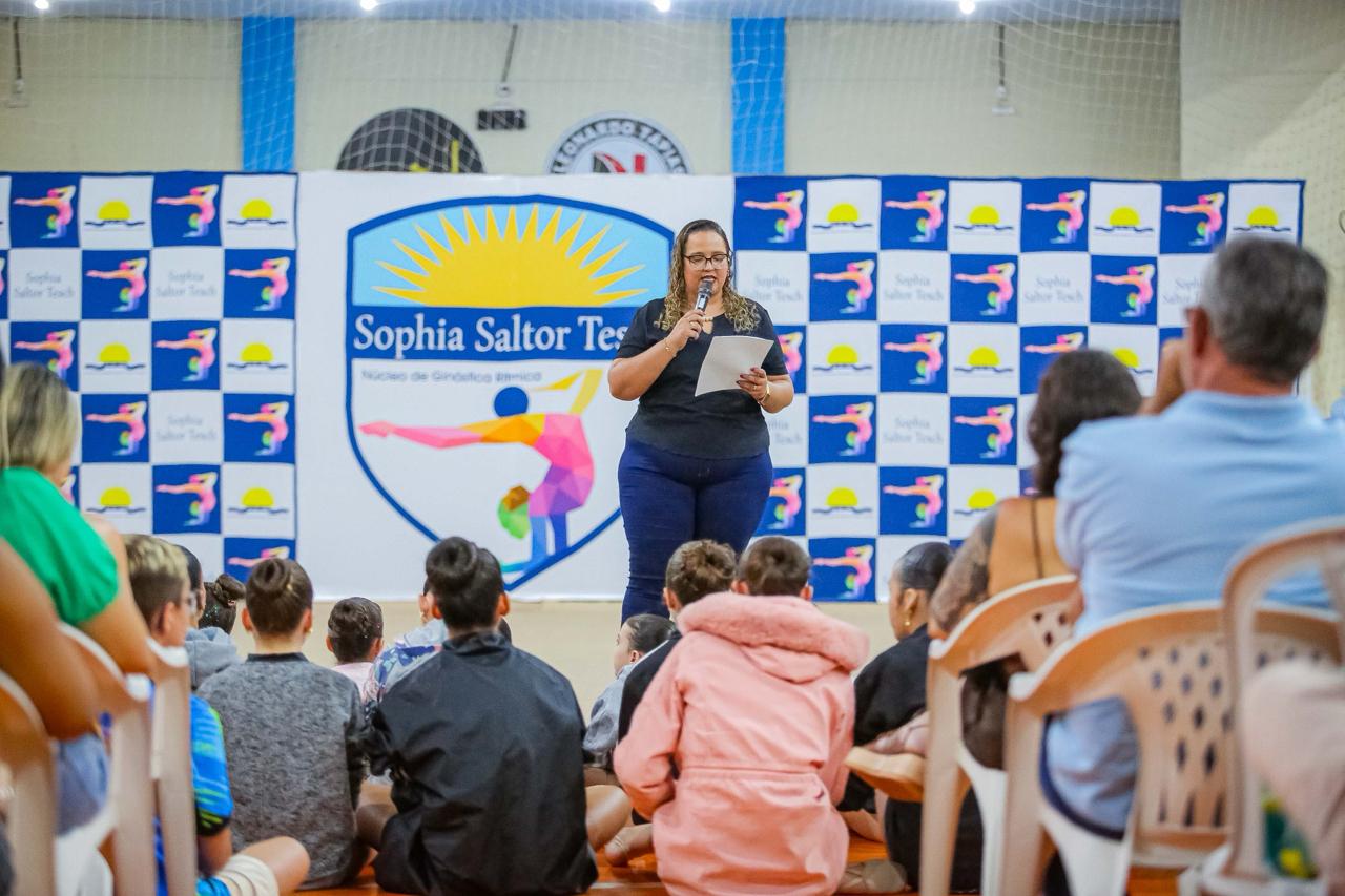 Um dos momentos mais emocionantes da noite foi a homenagem realizada à Sophia Saltor Tesch (in memoriam), criança que dá nome ao Núcleo de Ginástica Rítmica de Itarana. A lembrança de Sophia foi celebrada com carinho e respeito, reforçando o legado que ela deixou para o esporte no município e destacando sua inspiração para todas as atletas que seguem seu caminho.