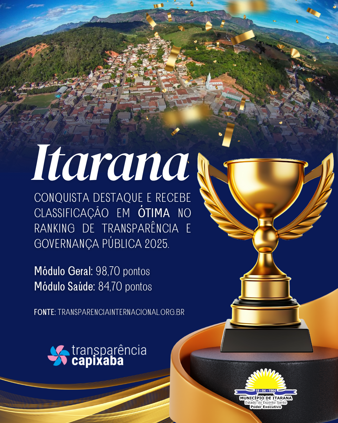 A Prefeitura Municipal de Itarana comemora mais um importante reconhecimento na área da gestão pública. De acordo com o resultado final do Índice de Transparência e Governança Pública (ITGP) - Executivo...