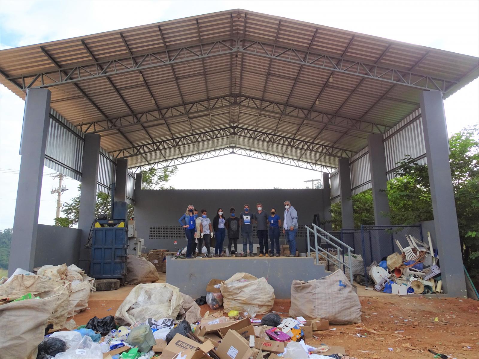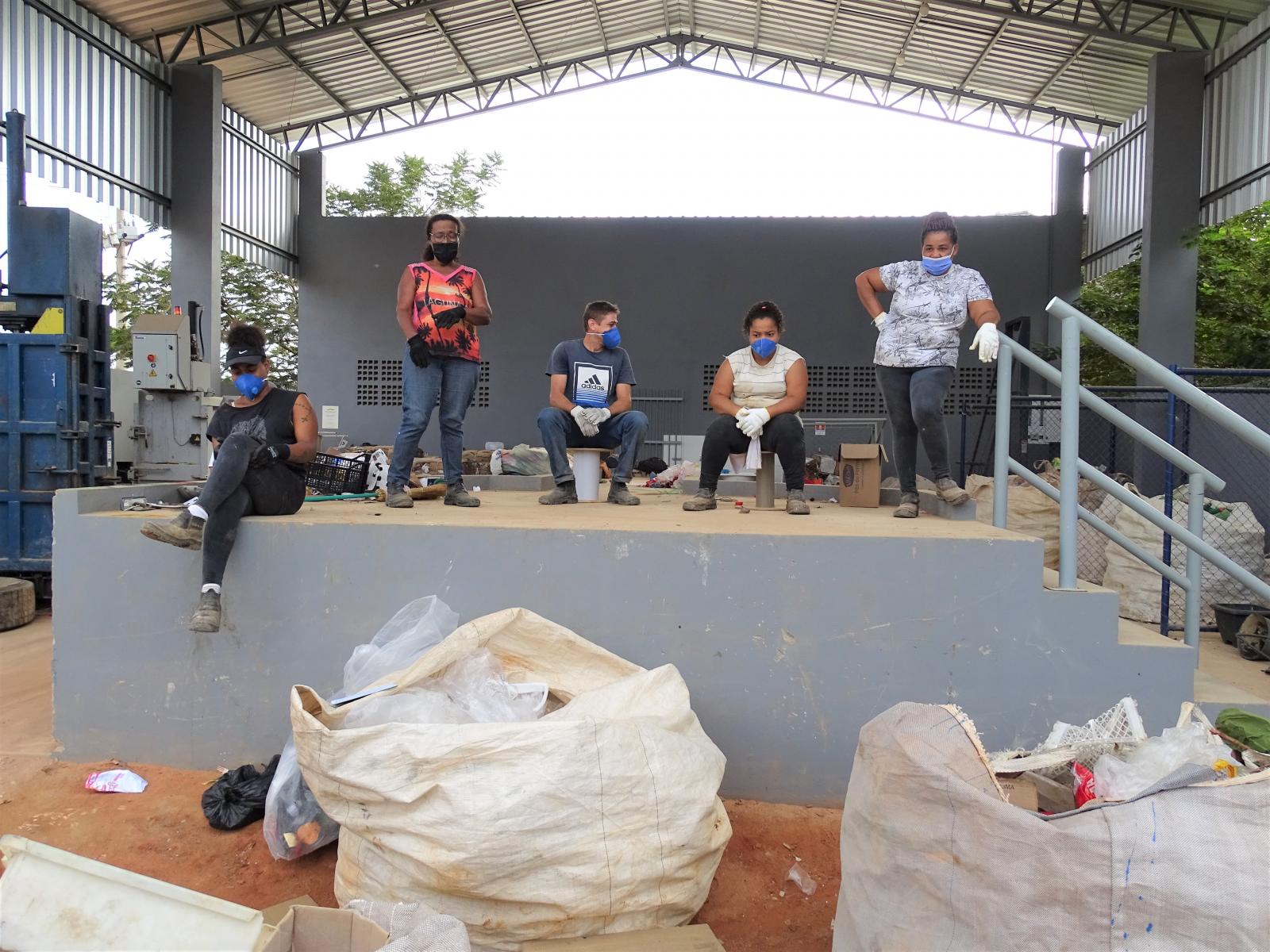 Equipe da Secretaria Municipal de Agricultura e Meio Ambiente (Semama) junto à Associação de Catadores de Itarana (ACI) ao final de trabalhos no Galpão de Triagem.