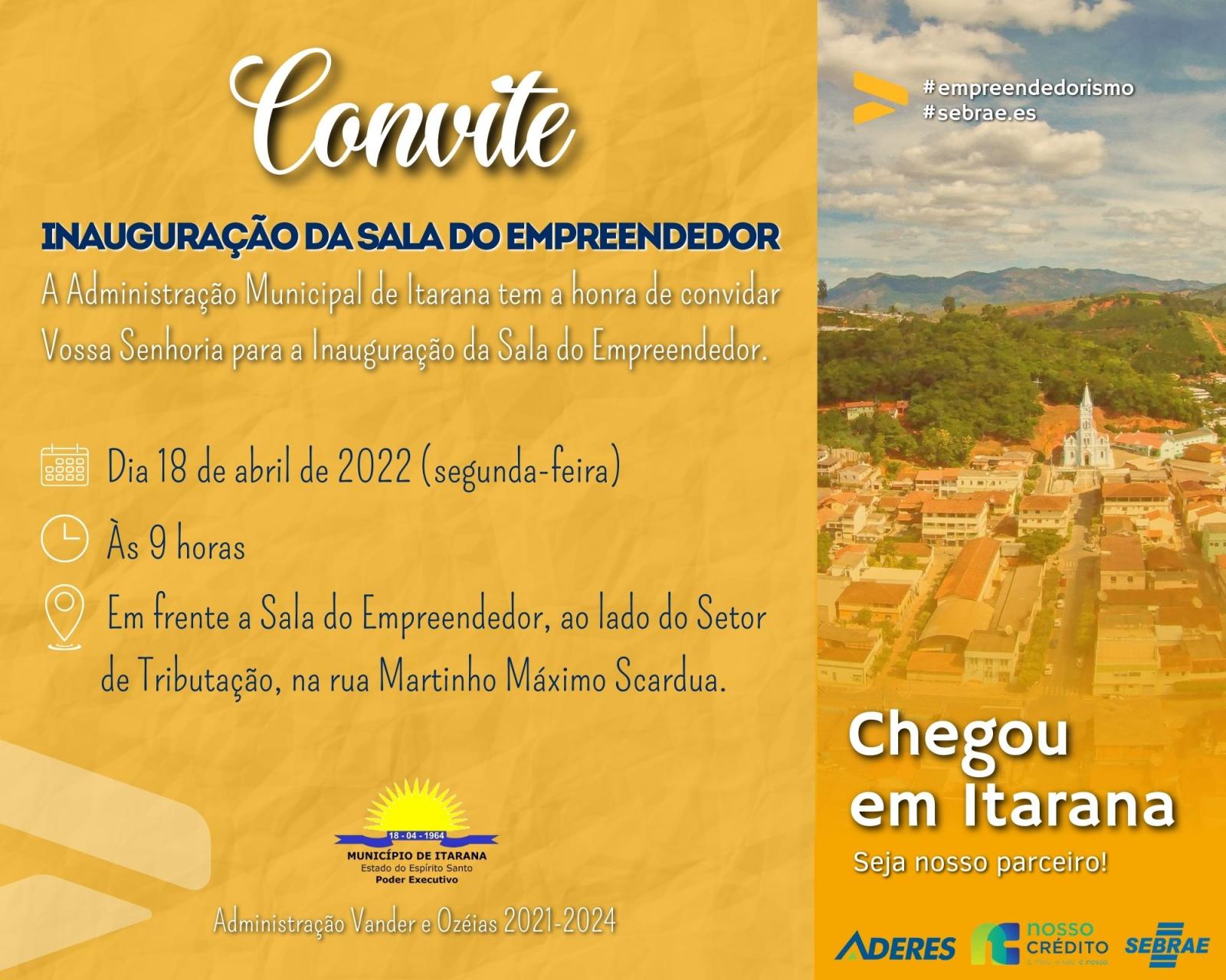 Convite: Inauguração da Sala do Empreendedor em Itarana