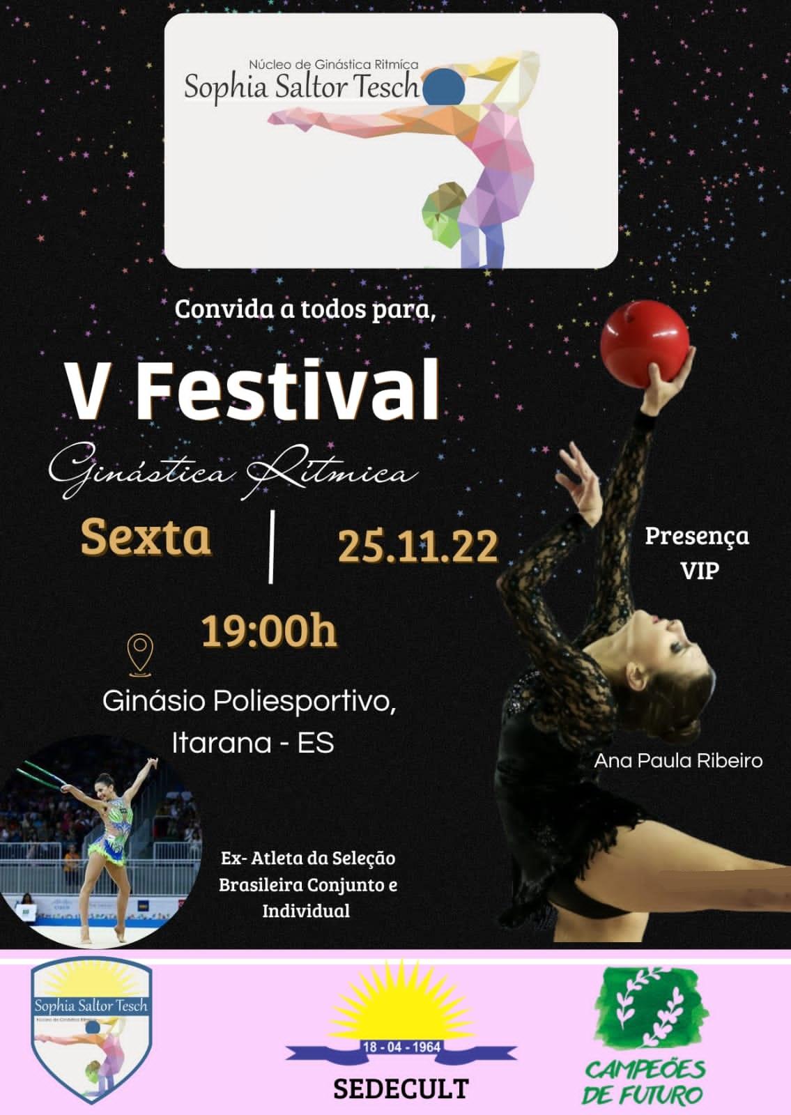 A Secretaria Municipal de Desporto, Cultura e Turismo (Sedecult) convida você para participar do 5º Festival de Ginástica Rítmica do município de Itarana.