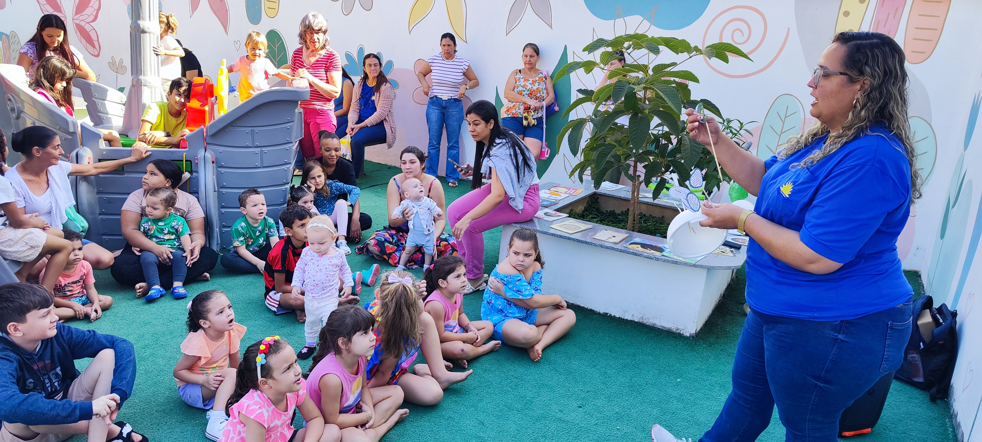 Nesta quinta-feira (24), o evento precisou ser cancelado. Mas amanhã, sexta-feira (25) estaremos de volta e será a vez da tia Gessika conduzir o momento, trazendo mais encantamento e diversão para os pequenos.