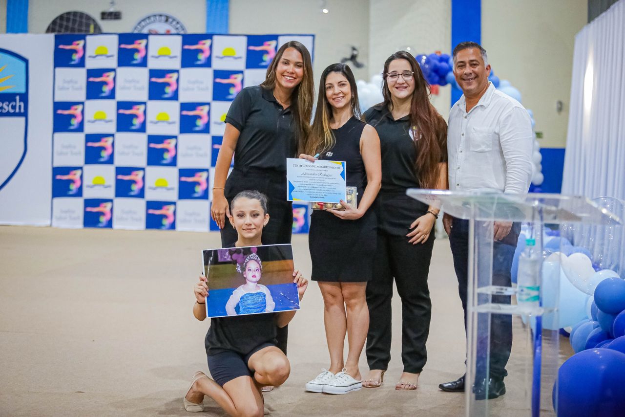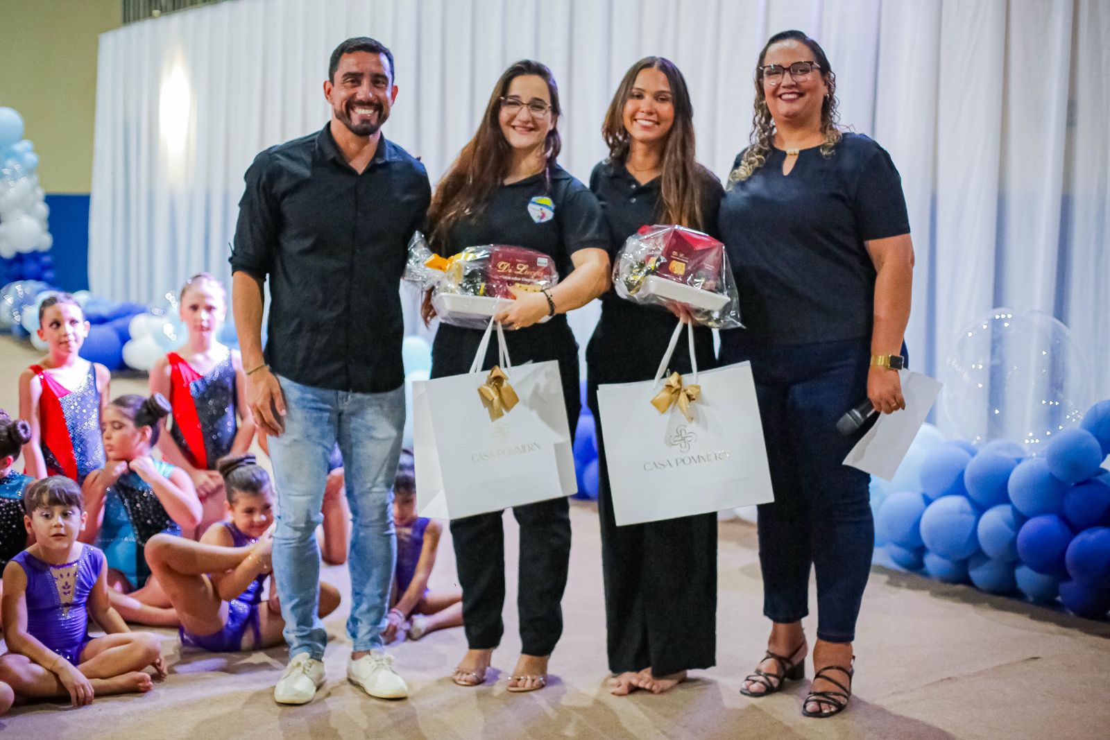 Um dos momentos mais emocionantes da noite foi a homenagem realizada à Sophia Saltor Tesch (in memoriam), criança que dá nome ao Núcleo de Ginástica Rítmica de Itarana. A lembrança de Sophia foi celebrada com carinho e respeito, reforçando o legado que ela deixou para o esporte no município e destacando sua inspiração para todas as atletas que seguem seu caminho.