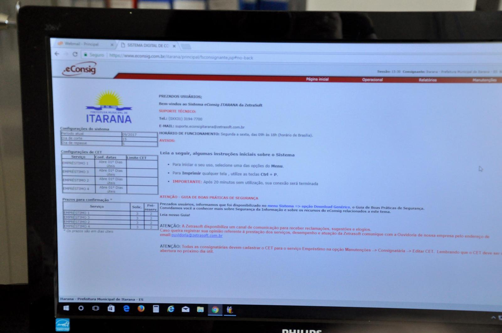 A Prefeitura Municipal de Itarana agora está integrada com o Sistema Digital de Consignações - eConsig. Os empréstimos consignados, que são descontados diretamente na folha de pagamento, agora serão realizados através de um sistema digital que oferece informações dos servidores diretamente para os bancos.