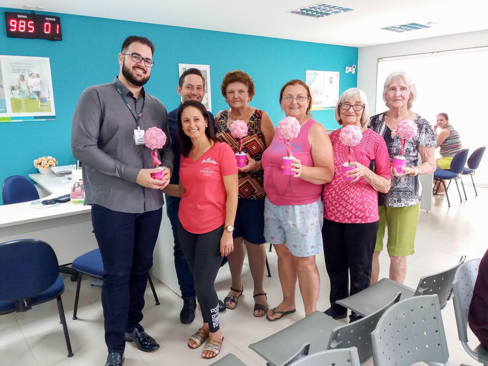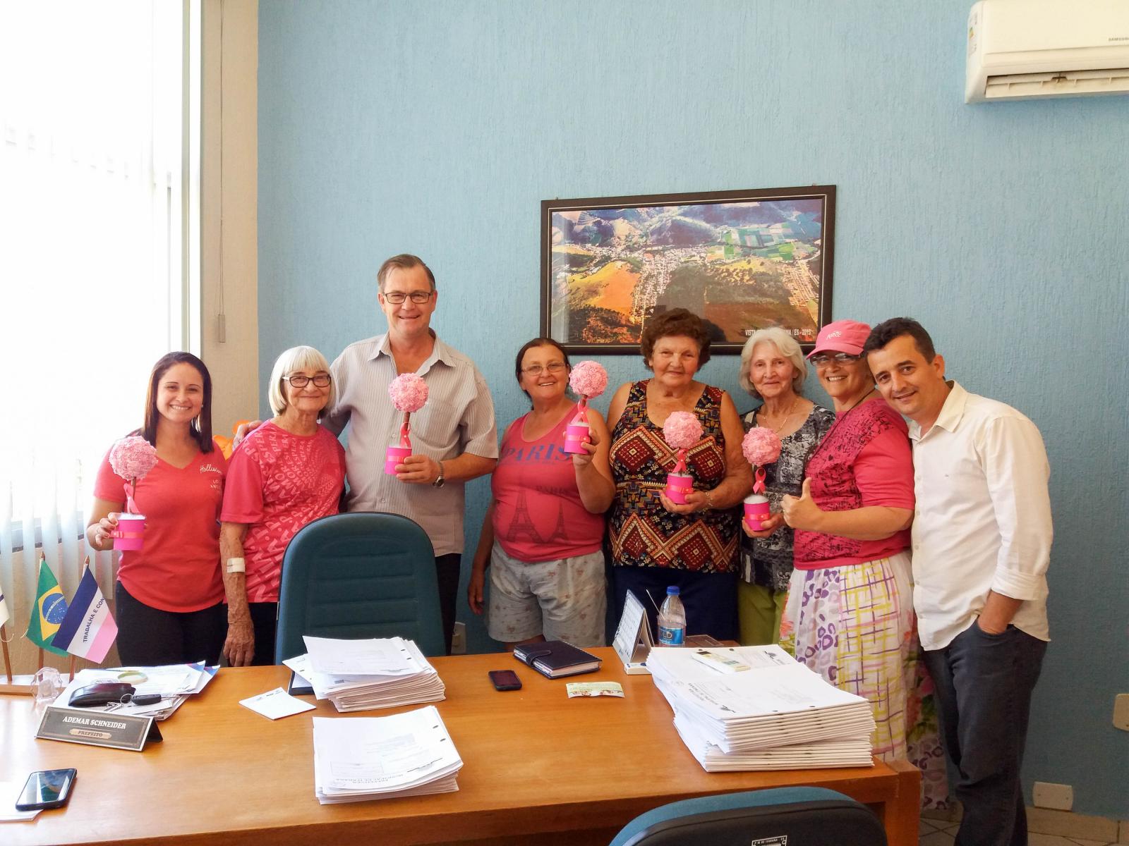 As idosas que fazem parte do Serviço de Convivência e Fortalecimento de Vínculos da Terceira Idade se mobilizaram para apoiar o movimento Outubro Rosa. Na semana passada o grupo participou de uma oficina para a confecção de flores de fuxico na cor rosa, que depois foram entregues em diversos órgãos públicos, bancos e comércio do município.