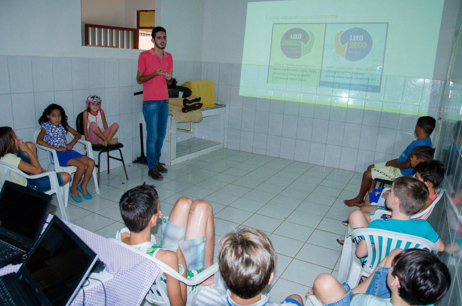 Foram realizadas palestras educativas nas Escolas Luiza Grimaldi e Aleyde Cosme para mobilizar os alunos para a importância da Coleta Seletiva.