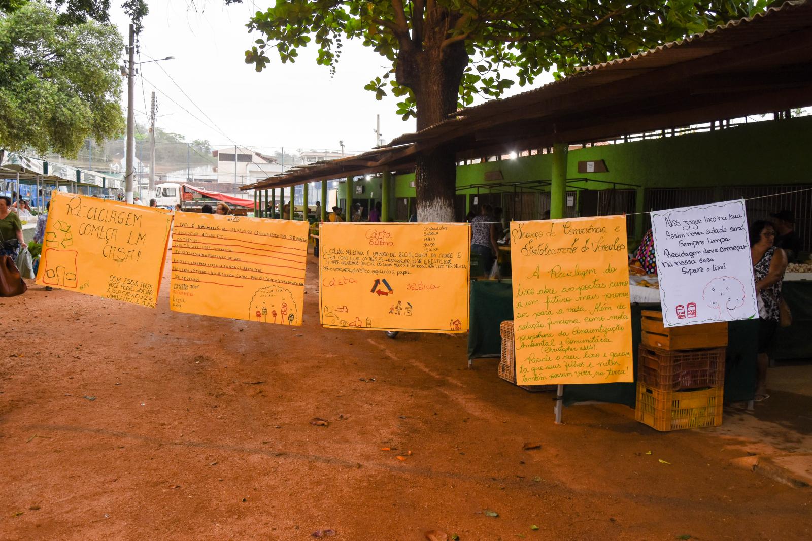 As crianças e adolescentes do Serviço de Convivência e Fortalecimento de Vínculos, da Secretaria de Assistência Social, participaram de palestras e confeccionaram cartazes sobre a Coleta Seletiva, que foram expostos na Feira Livre desta sexta (10).