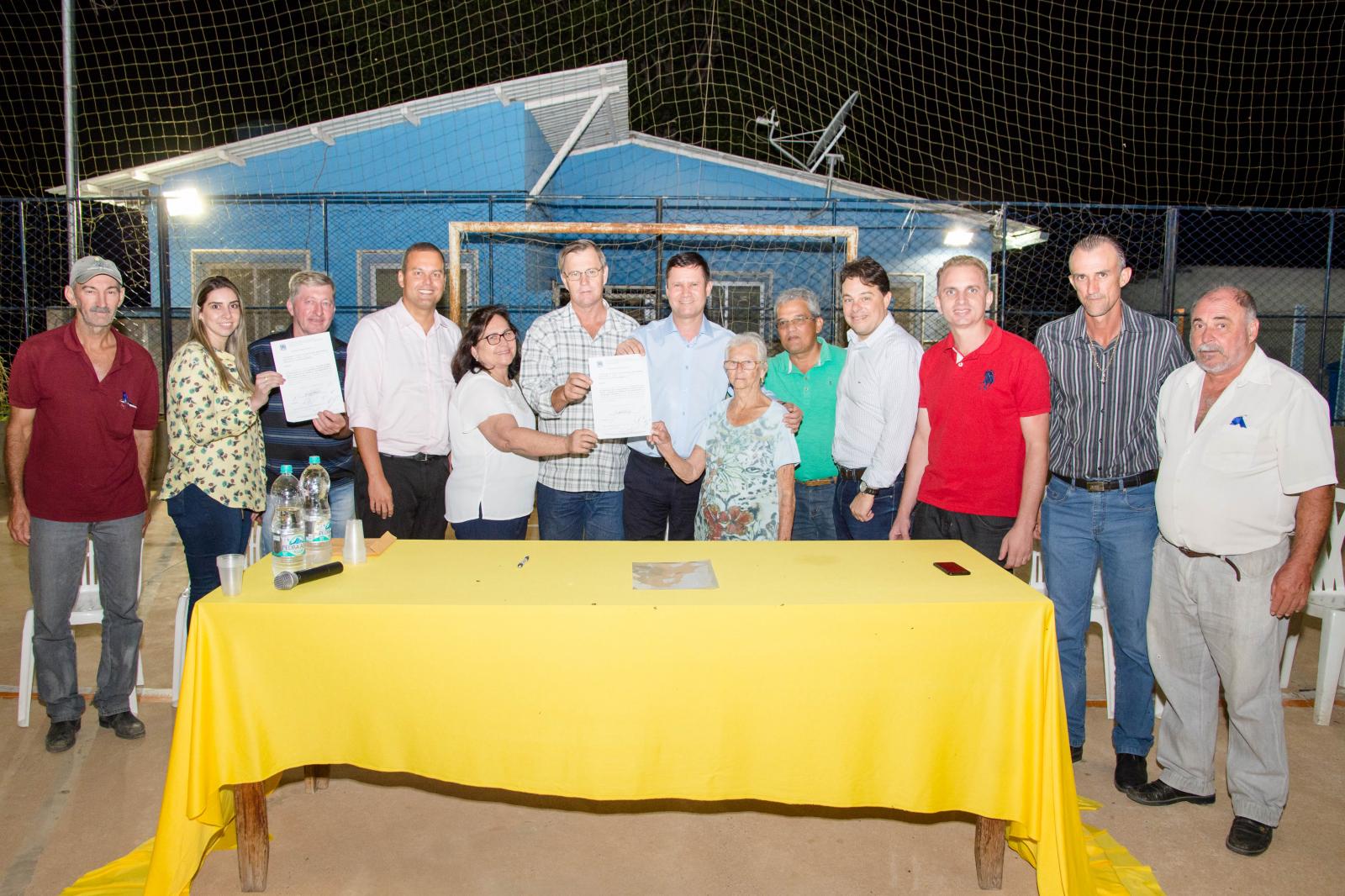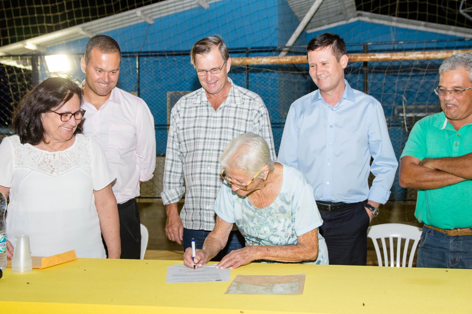 A solenidade reuniu moradores e autoridades estaduais e municipais como o subsecretário administrativo de Estado da Agricultura, Abastecimento, Aquicultura e Pesca (Seag), Horácio Augusto Mendes de Sousa, o prefeito Ademar Schneider, a vice Leonlia Fiorotti Galazi, o deputado estadual Dary Pagung, vereadores e secretários.