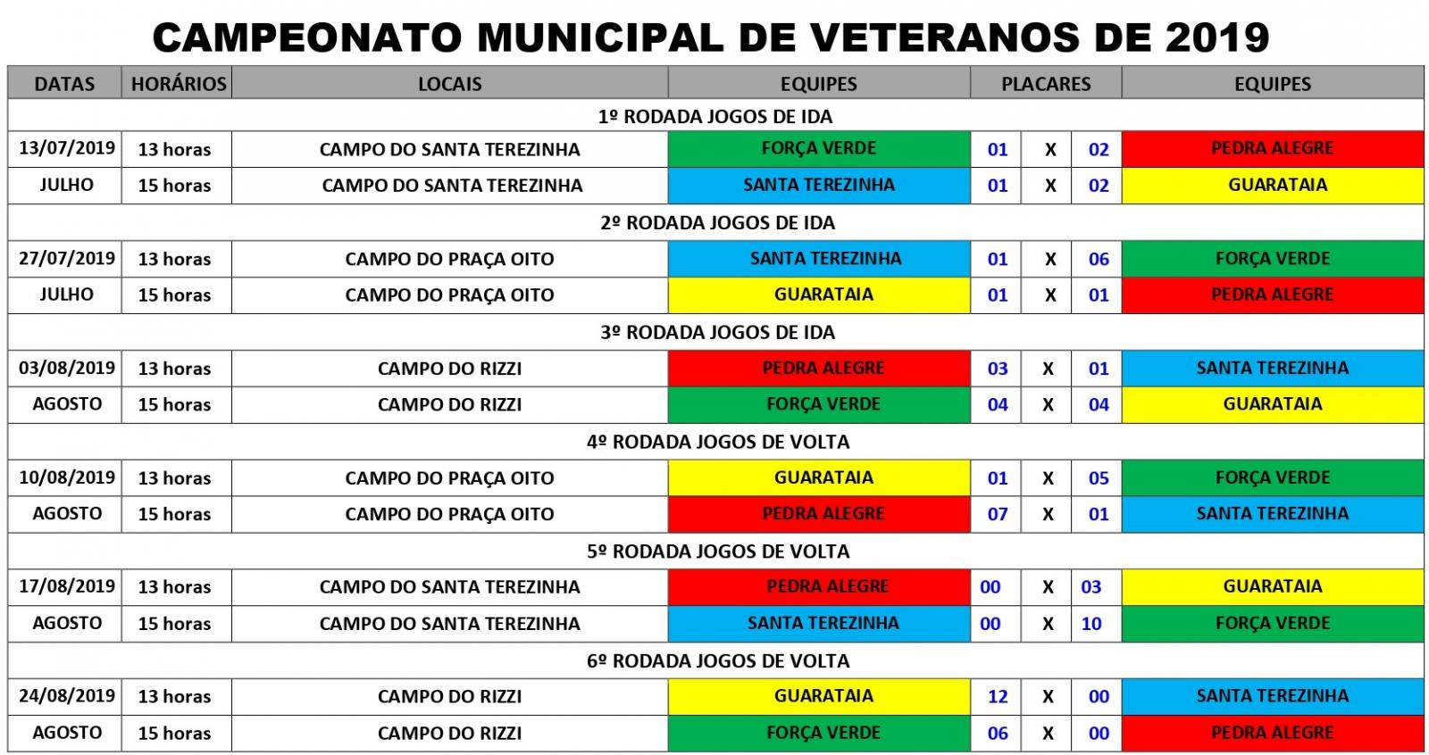 Confira a tabela dos jogos do Campeonato Municipal de Veteranos 2019: