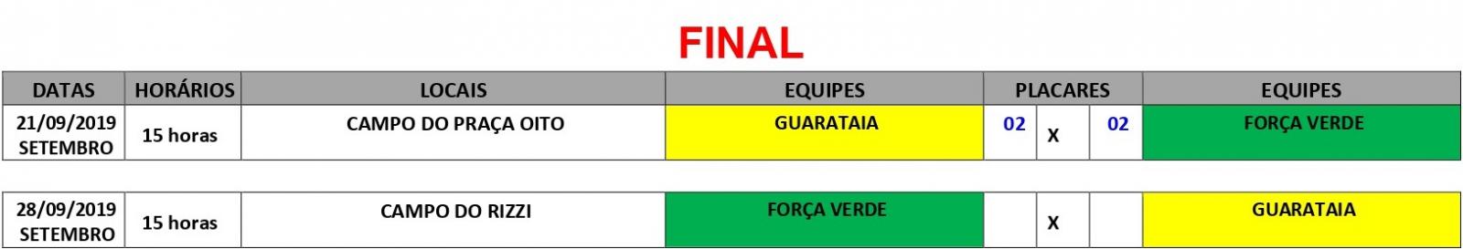 A fase final começou a ser decidida em um jogo no dia 21 de setembro, no Campo da Praça Oito, onde o placar entre esses dois times ficou empatado, ambos com 2 (dois) gols.