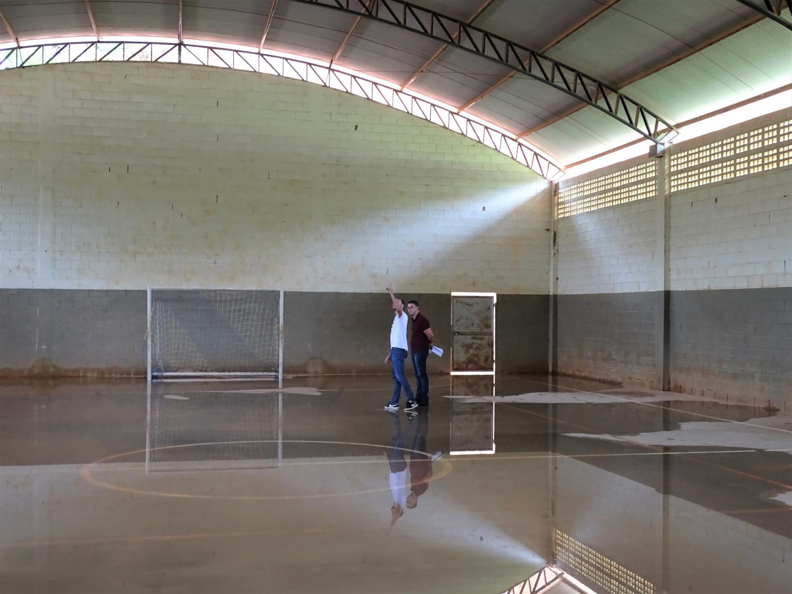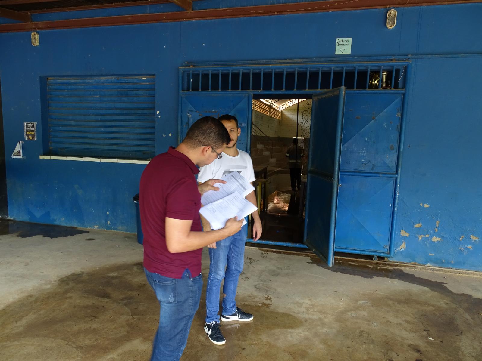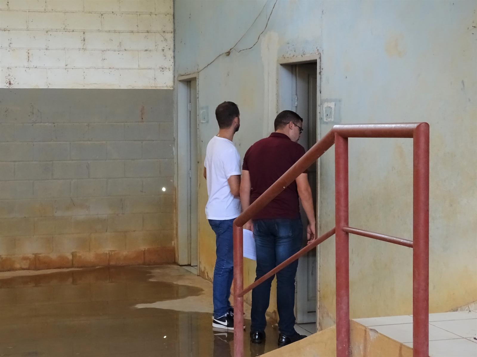 (O engenheiro civil da Prefeitura Municipal de Itarana e o representante da empresa vencedora visitando a quadra que será reformada)