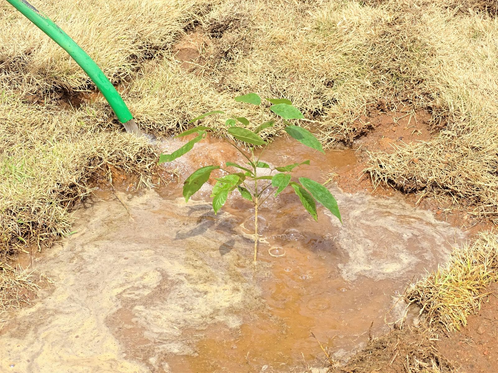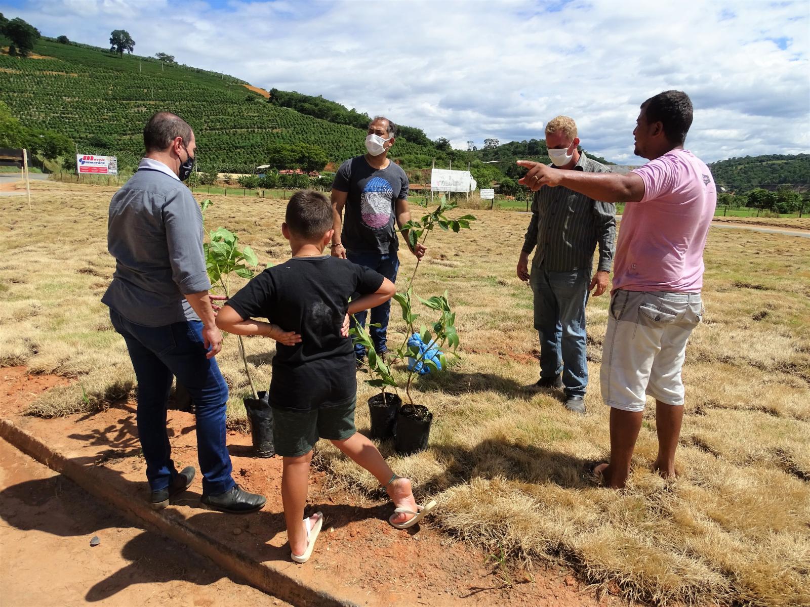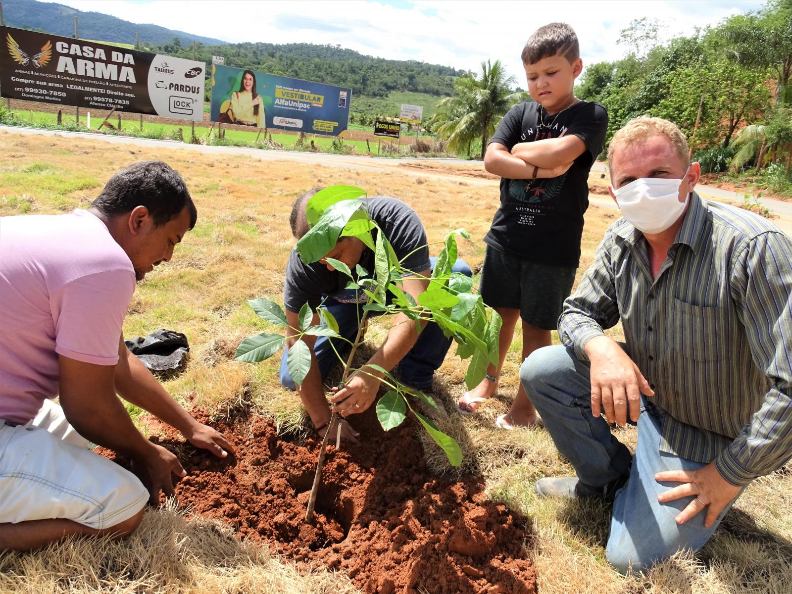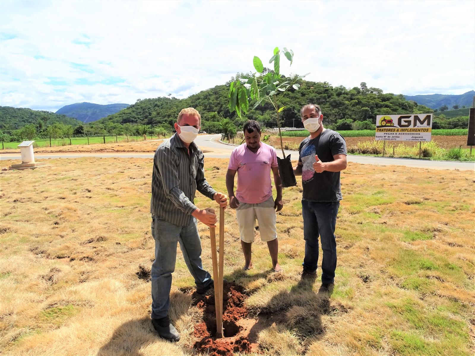 O prefeito, Vander Patricio, juntamente com o vice-prefeito, Ozéias Baldotto, e o chefe de Gabinete, Jacques Fabiano Toniato Gonçalves, colocaram a mão na massa, ajudando no plantio das árvores.