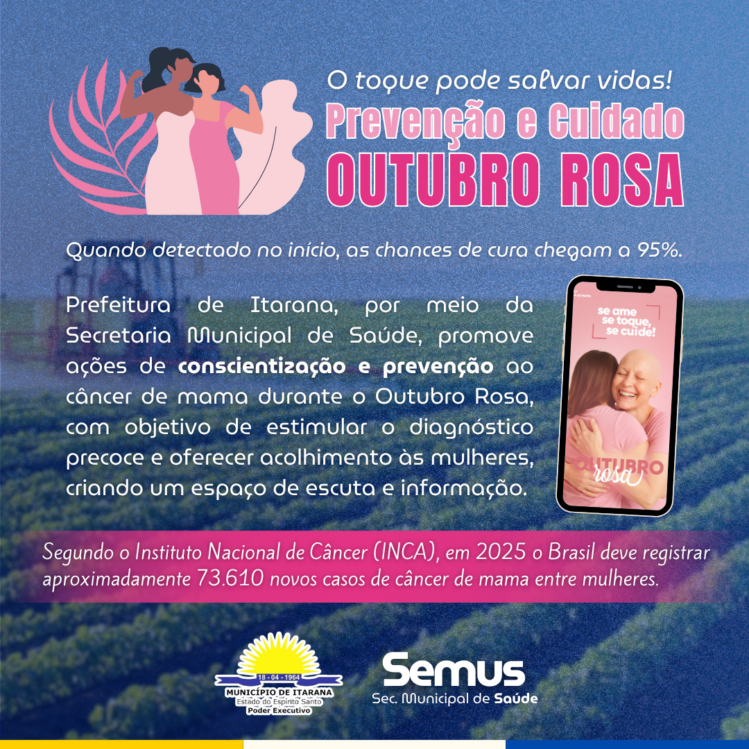 Durante todo o mês de outubro, a Prefeitura Municipal de Itarana, por meio da Secretaria Municipal de Saúde, realizou diversas ações voltadas à conscientização, prevenção e cuidado com a s...