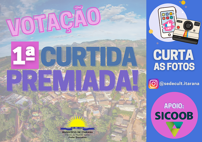 A Prefeitura Municipal de Itarana, através da Secretaria Municipal de Desporto, Cultura e Turismo (Sedecult), abre hoje (26) as votações para o Concurso 1ª Curtida Premiada de Itarana. O concurso é de caráter exclusivamente cultural, de partici...