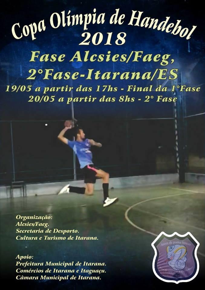 A Secretaria Municipal de Desporto, Cultura e Turismo de Itarana (Sedecult), juntamente com a Alcsies/Faeg está organizando a segunda fase da Copa Olímpia de Handebol 2018, categoria adulto. As partidas serão no Ginásio Poliesportivo Saturnino Ra...