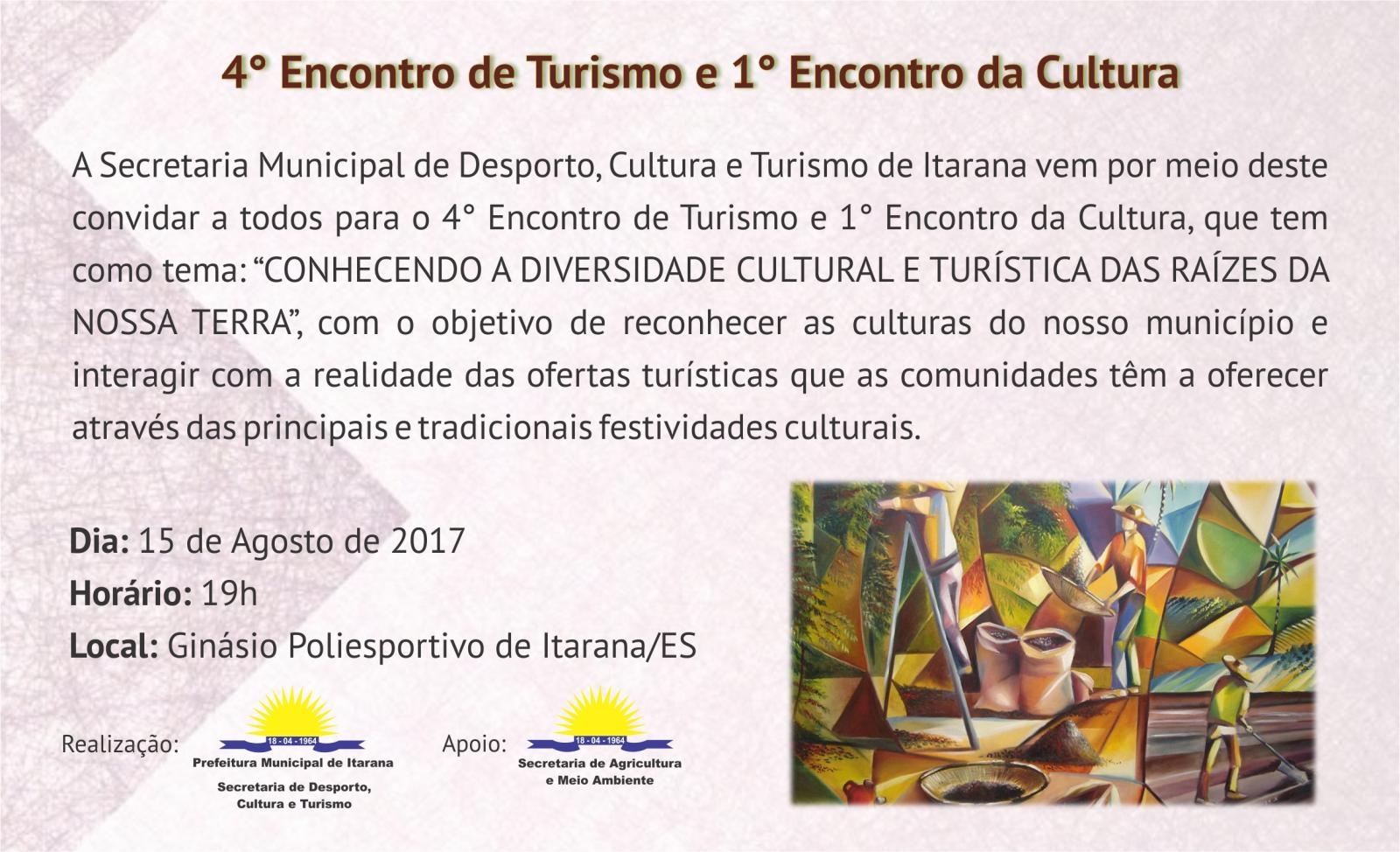 A Secretaria Municipal de Desporto, Cultura e Turismo realiza no dia 15 de agosto o 4º Encontro de Turismo e o 1º Encontro da Cultura, que neste ano tem como tema “Conhecendo a diversidade Cultural e Turística das Raízes da Nossa Terra”. O foco...